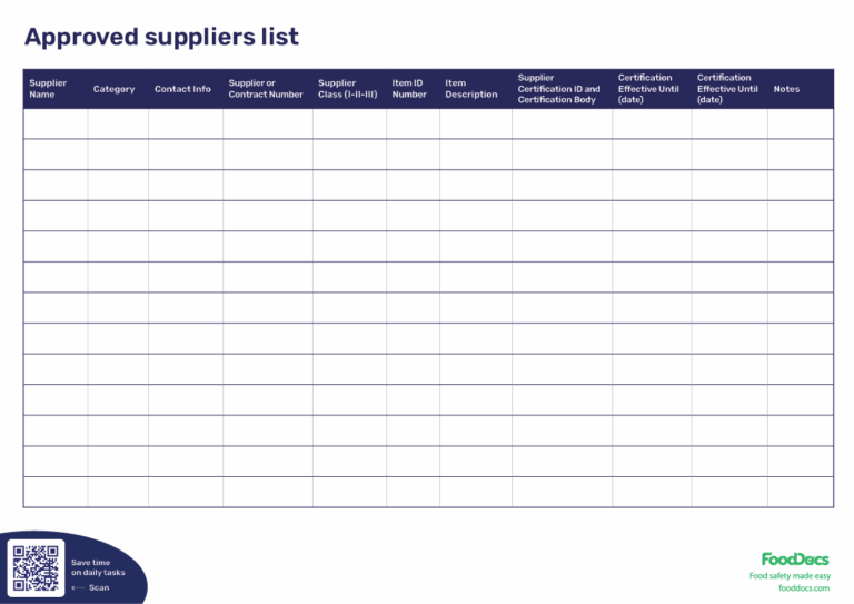 Free Editable Approved Supplier List Template