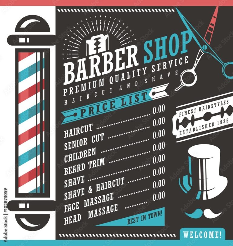 Free Editable Barber Shop Price List Template