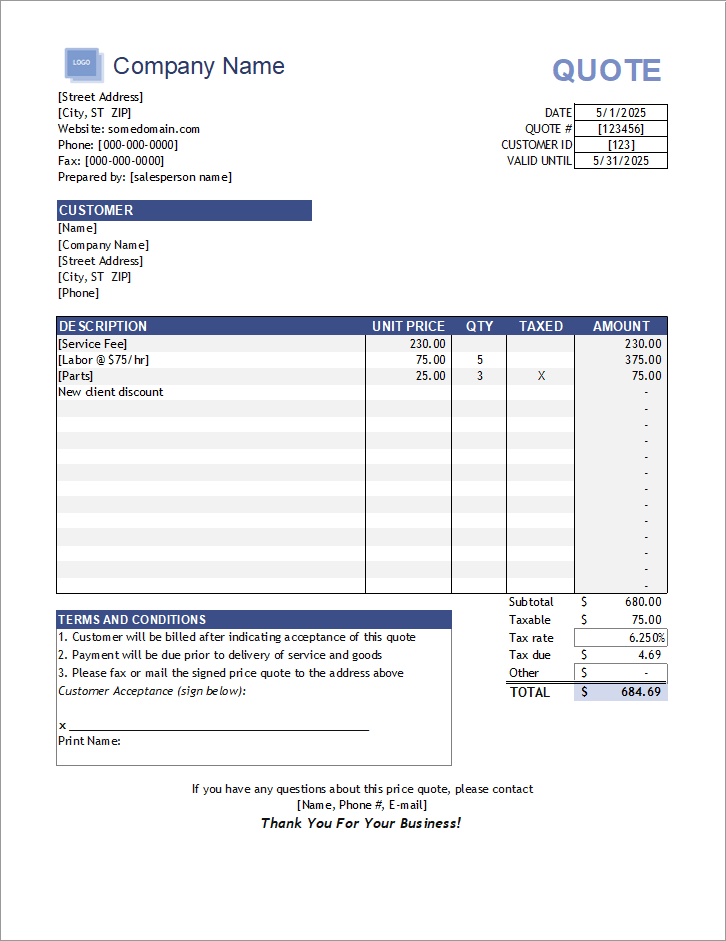 Free Editable Company Quotation Template