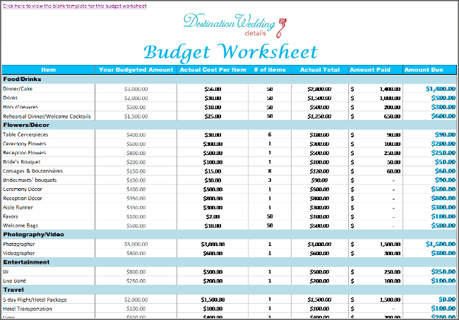 Free Destination Wedding Budget Template