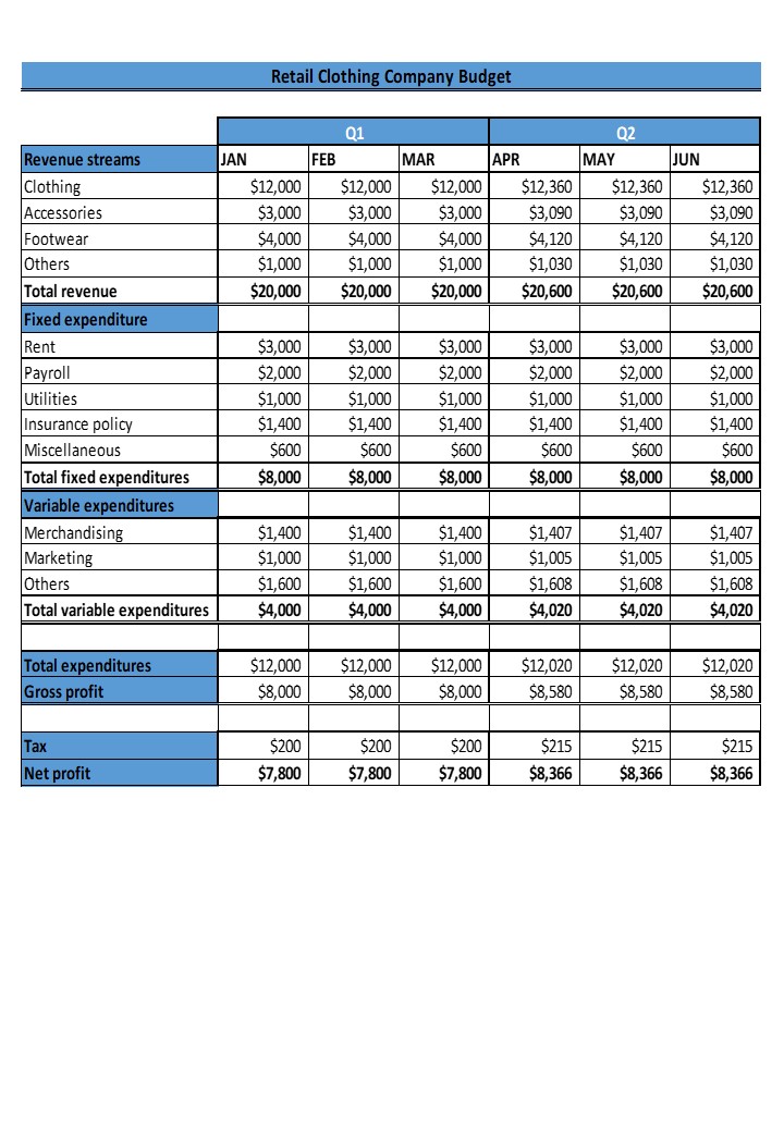 Free Customizable Clothing Line Budget Template