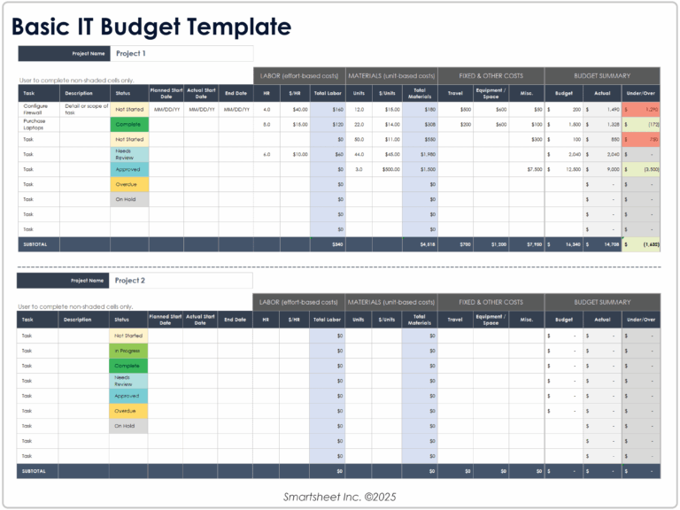 Free Printable Information Technology Budget Template