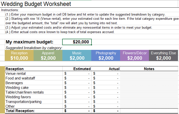 A truly effective budgeting spreadsheet for your big day breaks down the myriad of potential costs into digestible, organized categories. This granular approach is fundamental, as it ensures that every single detail, no matter how small, is considered and accounted for within your overall financial strategy. A well-structured template will typically feature columns for the estimated cost, the actual amount spent, the date of payment, and a notes section for specific vendor information or special instructions.