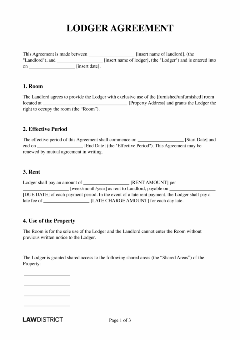Free Editable Free Basic Lodger Agreement Template