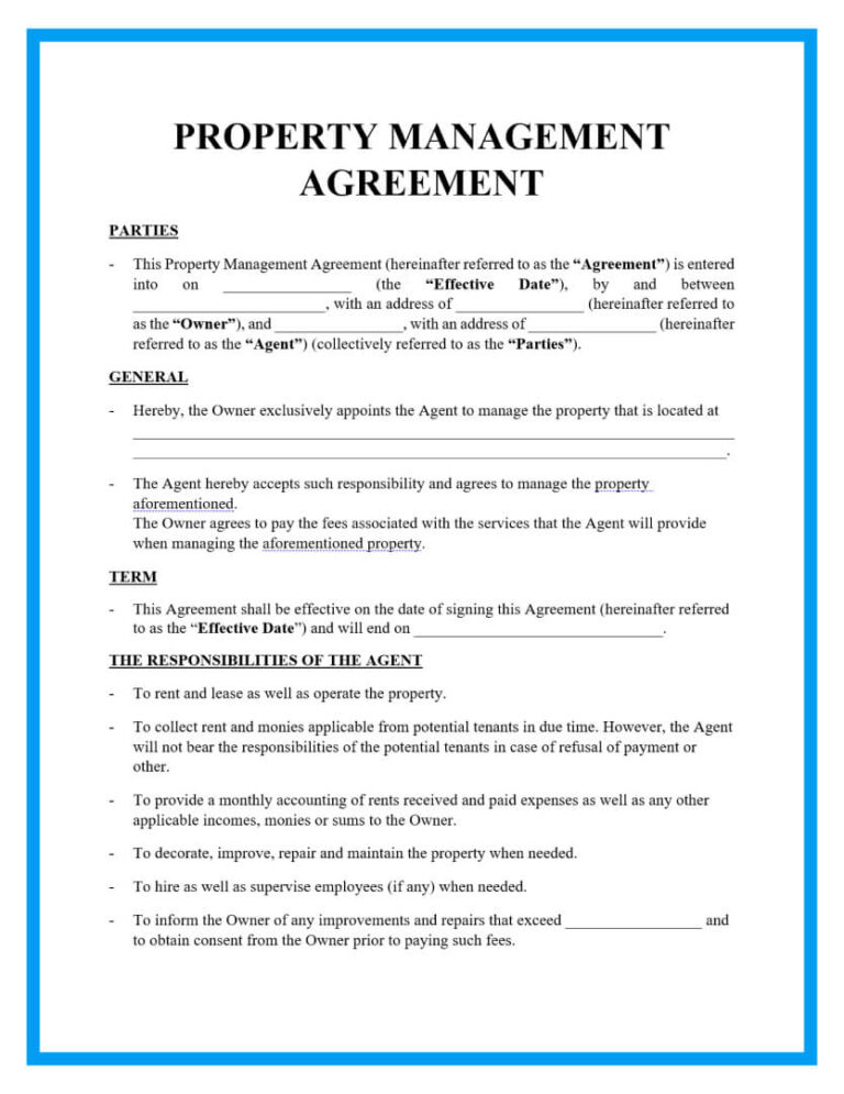 Free Free Commercial Property Management Agreement Template