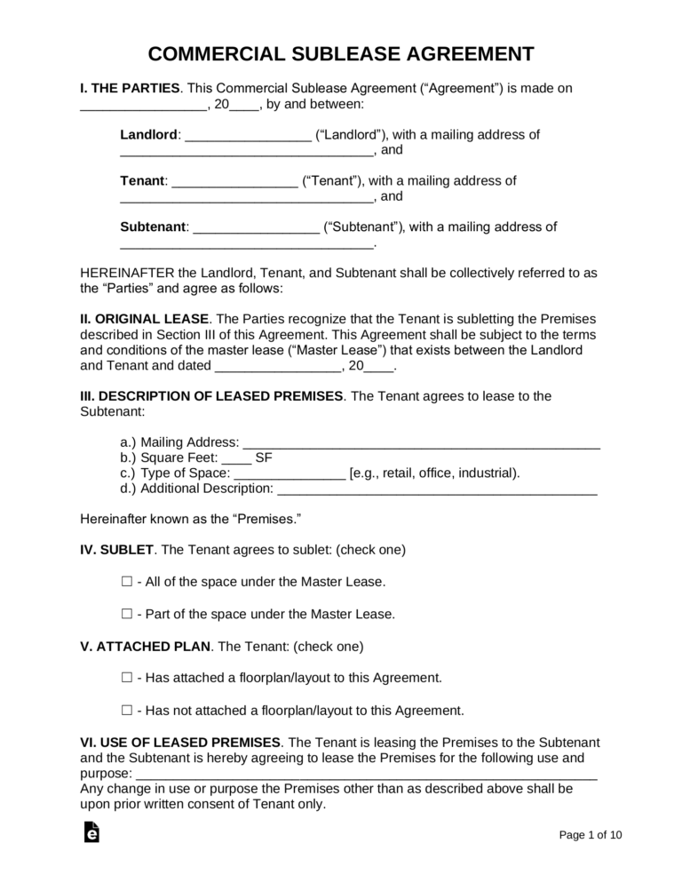 Free Editable Free Commercial Sublease Agreement Template