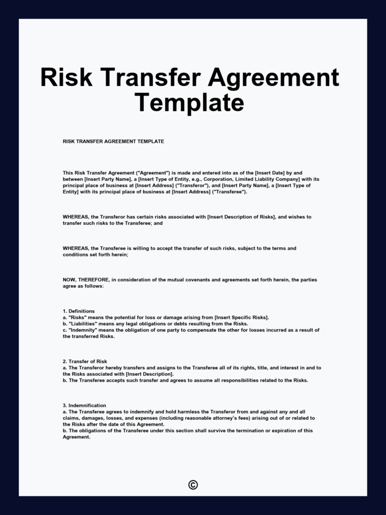 Free Editable Risk Sharing Agreement Template