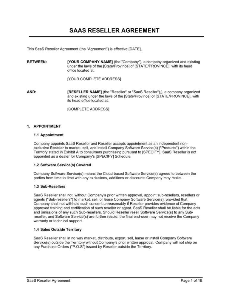 Free Saas Reseller Agreement Template