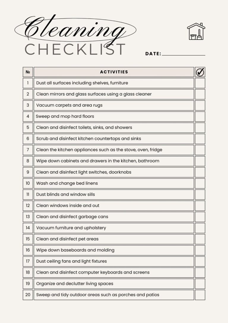 Free Printable Bedroom Cleaning List Template