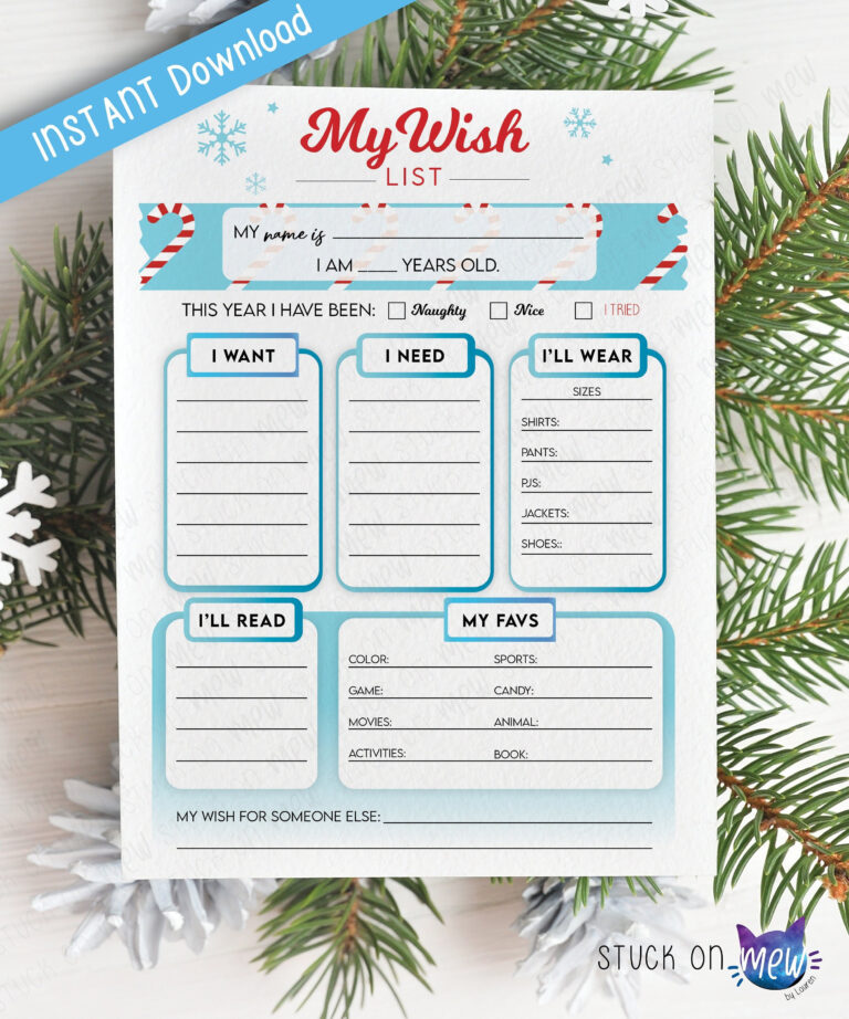 Free Christmas List Template For Adults