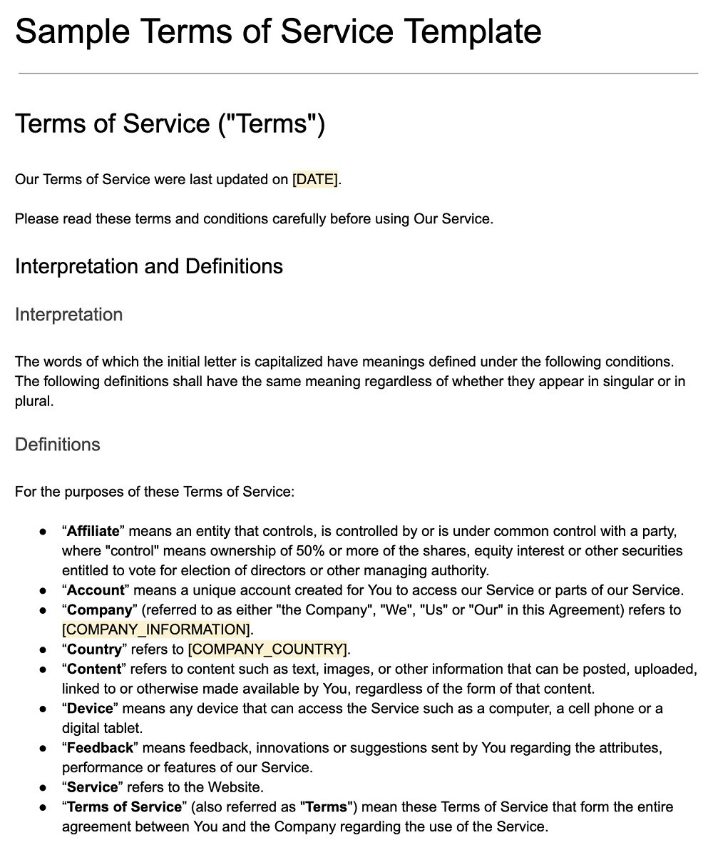 - Definitions: Clearly defines key terms used throughout the document (e.g., "Service," "User," "Content," "Platform"). This prevents ambiguity and ensures consistent understanding.