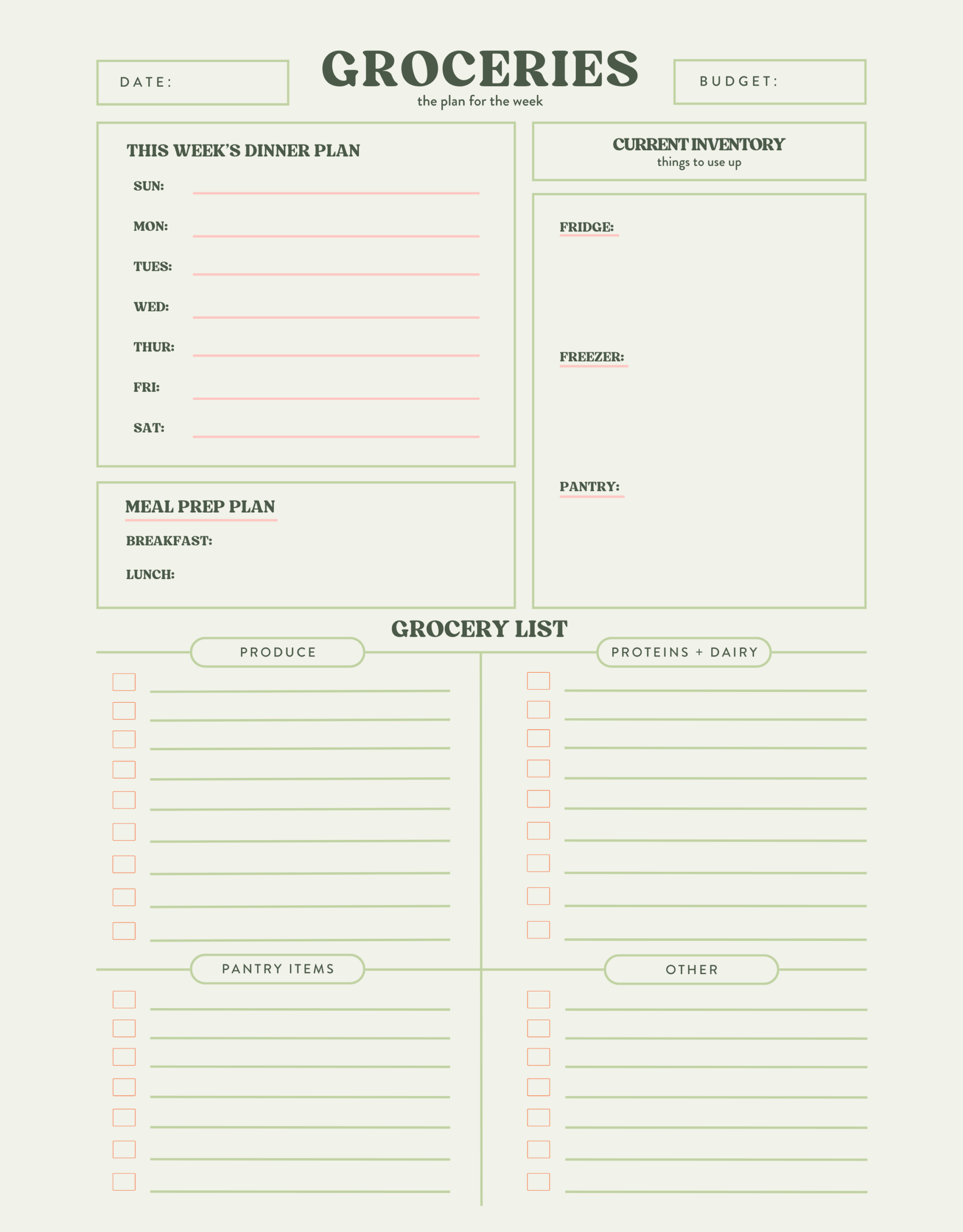 - Notes/Reminders: Space for additional information, such as "check expiry dates," "try new brand," or "store-specific items."