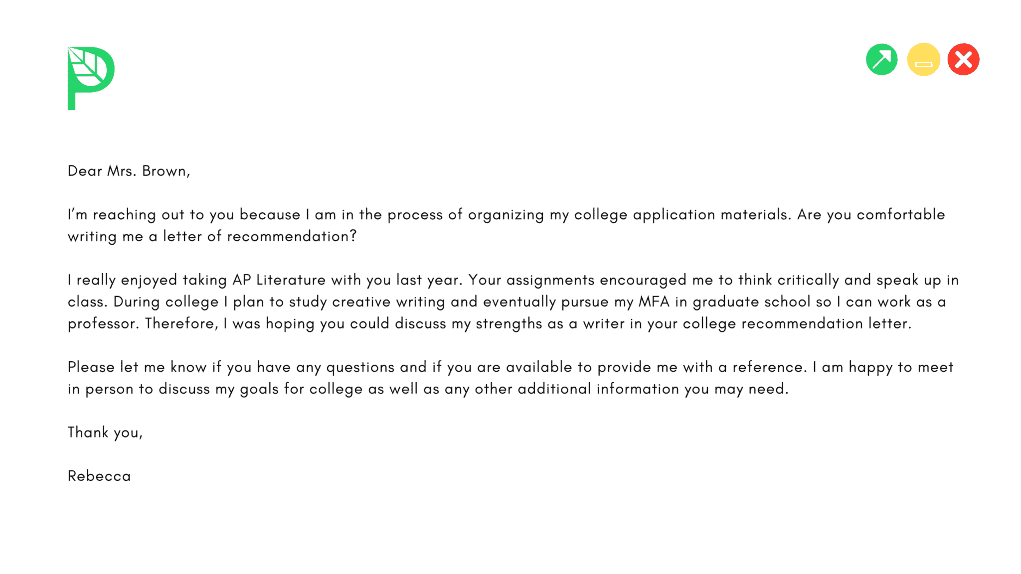 - Personalized Salutation: Address your recommender by name and acknowledge your relationship.