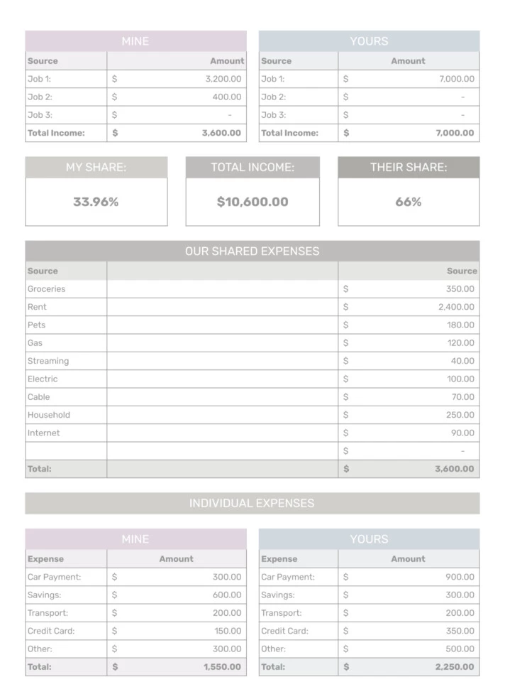 - Income Sources: Clearly list all net income streams for both partners. This includes salaries, freelance work, rental income, or any other regular inflow of money. Knowing your total combined income is the foundation of your spending plan.