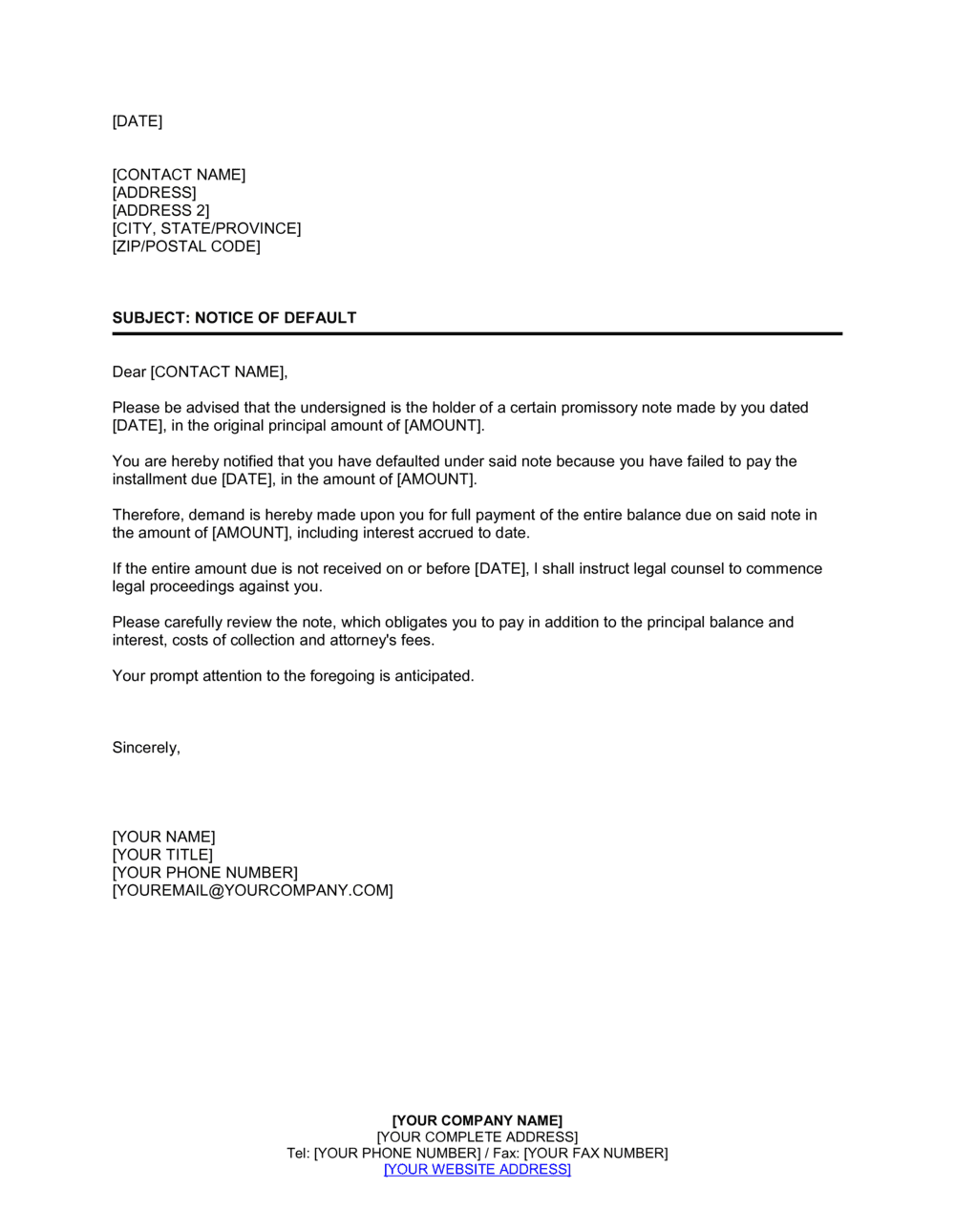 - Clear Subject Line: A concise, unambiguous subject line that immediately informs the recipient of the letter’s purpose, such as "Notice of Default – [Contract/Account Name] – [Date]."