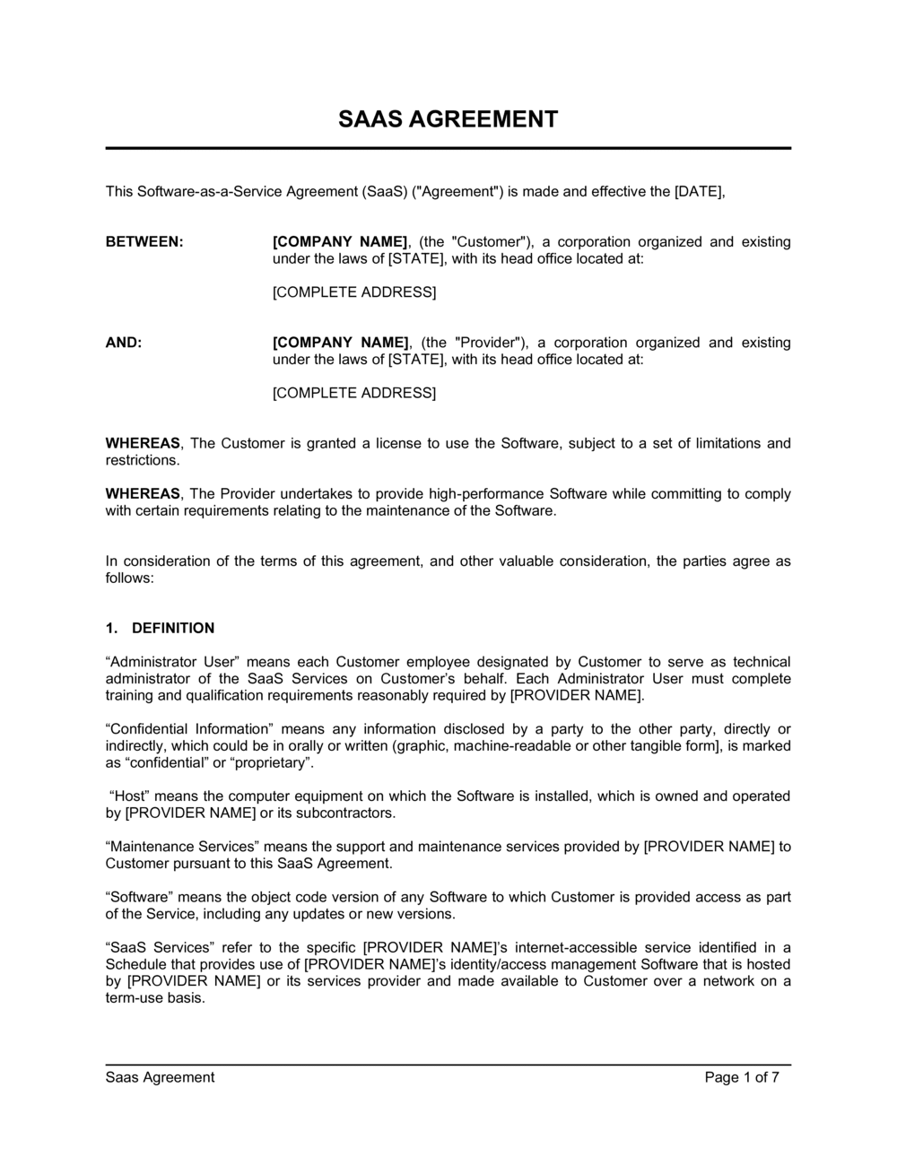 - Identification of Parties: Clearly name and identify the SaaS provider and the subscriber, including their legal entities and addresses.
